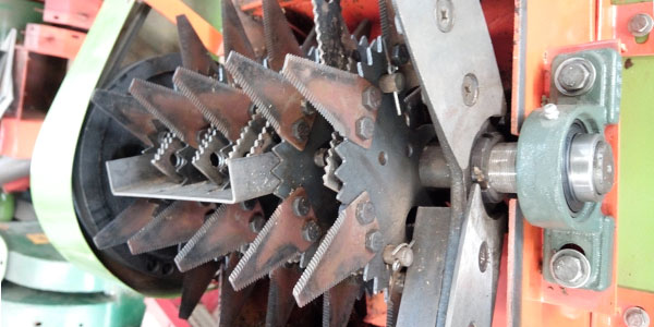 動(dòng)刀刀片使用65錳鋼制作而成,加厚鋸齒動(dòng)刀片,兩面可用,當(dāng)一面使用磨損后,用戶可以調(diào)頭更換使用,但是位置不能變換,換下刀片只能調(diào)頭后安裝在原位置,以保障運(yùn)轉(zhuǎn)平衡穩(wěn)定,使物料在切斷的同時(shí)又撕碎,提高破碎率。