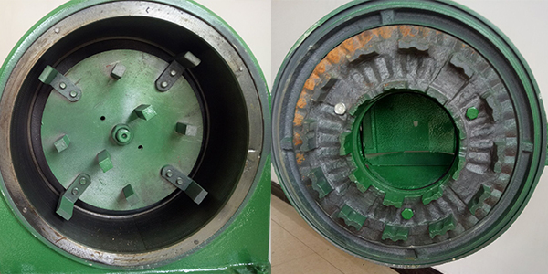 粉碎機由外殼、蓋、轉子,框架,粉碎室殼體和轉子組成,粉碎機主要工作部分是在粉碎室的齒爪和轉子。